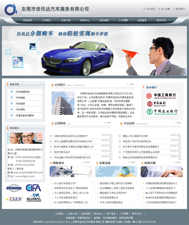 2009年初,為了更好地開展業(yè)務(wù)和服務(wù)客戶,“東莞市佳訊達(dá)交通信息咨詢有限公司”更名為“東莞市佳訊達(dá)汽車銷售服務(wù)有限公司”,現(xiàn)主要經(jīng)營業(yè)務(wù)擴展為:為企業(yè)和個人提供汽車按揭、擔(dān)保及登記代理服務(wù);汽車租賃服務(wù);汽車導(dǎo)購和有關(guān)交通信息的咨詢服務(wù)。”公司的發(fā)展又成功地向前邁了一大步。