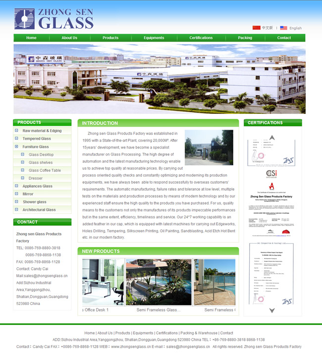 中森玻璃廠外貿(mào)英文網(wǎng)站